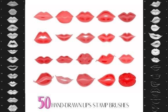 50 Hand-drawn Lips Stamp Brushes for Procreate!