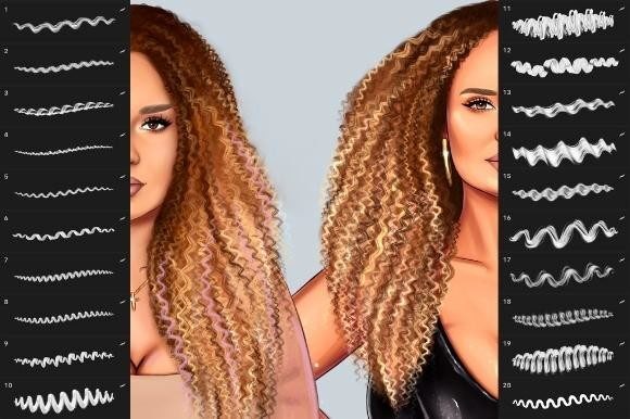 20 Curly Wavy Hair Brushpack Set for Procreate