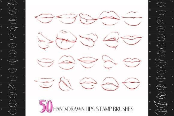 50 Hand-drawn Lips Stamp Brushes for Procreate!